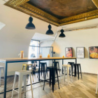 For those looking for a cozy dining experience, a second-floor seating area allows for a more relaxed atmosphere while you enjoy your meal. Whether you choose to sit or grab your food to savor with a view of the bustling streets, the ambiance complements the overall experience.